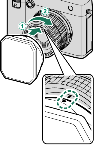 With the lens hood attached to the adapter ring, the entire adapter ring together with the hood can be detached from or attached to the camera.