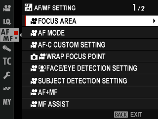 This item is also found in the photo menus (axF[INSTANT AF SETTING] (Still Photography)). Changes to one apply to the other.