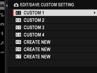Highlight a destination bank for the new settings ([CREATE NEW] C1 through C7) and press [MENU/OK].