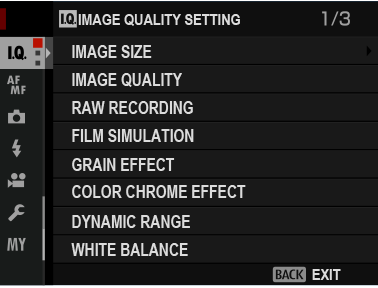 1. Press [MENU/OK] in the shooting display and select the [IMAGE QUALITY SETTING] tab.