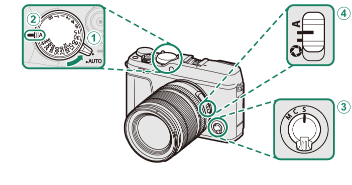 This section describes how to take pictures using program AE (mode [P]). See “Choosing a Shooting Mode” for information on [S], [A], and [M] modes.
