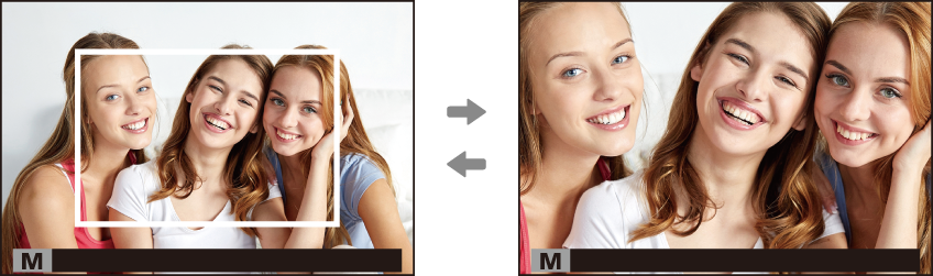 | Select focus point | Select center focus point | Choose from 5 frame sizes | Restore original size | |