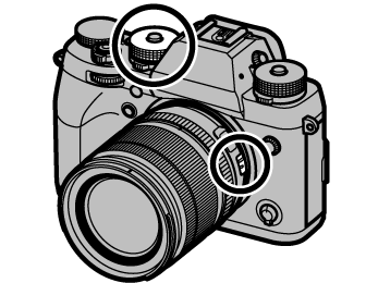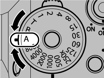 Rotate the shutter speed dial to [A] (auto), set aperture to , and rotate the lens aperture ring to adjust aperture as desired. [A] will appear in the display.