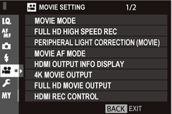 [MOVIE SETTING] > [MOVIE MODE] in the shooting menu.