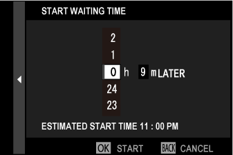 Use the selector to choose the starting time and then press [MENU]/[OK]. Shooting will start automatically.
