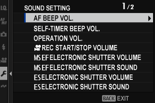 Adjust the volume of the sounds produced by the mechanical or electronic front-curtain shutter.