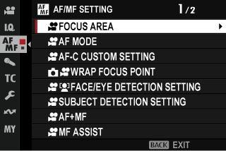 This item is also found in the photo menus (axF[INSTANT AF SETTING] (Still Photography)). Changes to one apply to the other.