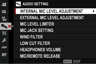 | [AUTO] | The camera adjusts the recording level automatically. |