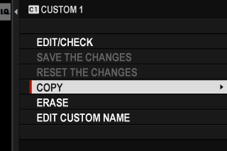 3. Highlight [EDIT CUSTOM NAME] and press [MENU/OK].