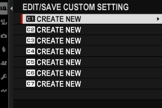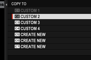 2. Highlight a destination bank for the new settings ([CREATE NEW] C1 through C7) and press [MENU/OK].