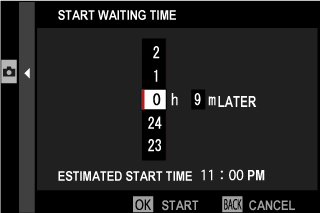 Use the focus stick to choose the starting time and then press [MENU/OK]. Shooting will start automatically.