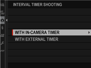 If you are using a remote release with its own timer, select [WITH EXTERNAL TIMER]. You will be returned to the shooting display, where you can start interval-timer photography using the remote release.