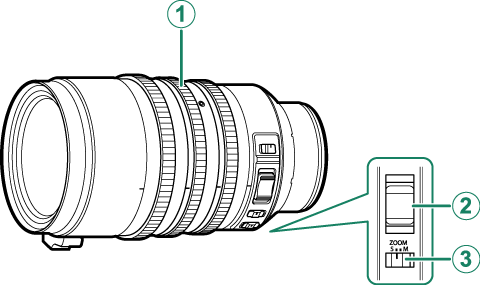 • Slide the zoom mode switch to M and rotate the zoom ring to control the zoom.