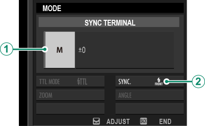 SYNC TERMINAL will be also displayed if an incompatible flash unit or no flash unit is connected.