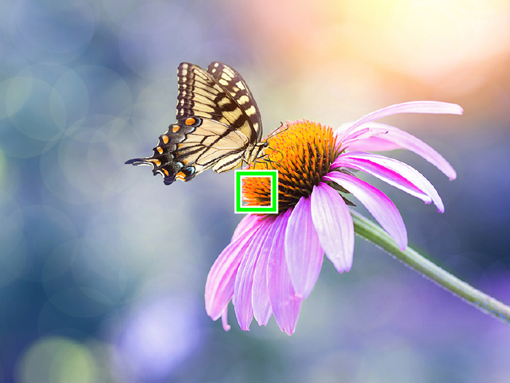 Camera focuses on subject in selected focus zone. Focus zones include multiple focus points, making it easier to focus on subjects in motion. | |