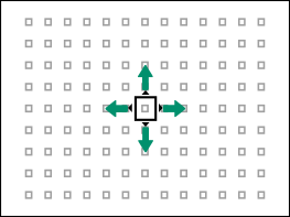 Focus frames are shown by small squares (□), focus zones by the large squares.