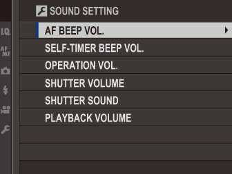 Choose the volume of the beep that sounds when the camera focuses. The beep can be muted by selecting .