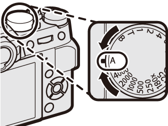 Select from P (program AE), S (shutter-priority AE), A (aperture-priority AE), and M (manual) modes (Mode P: Program AE, Mode S: Shutter-Priority AE, Mode A: Aperture-Priority AE, Mode M: Manual Exposure). Adjust shutter speed and aperture using program shift (mode P) or set shutter speed and/or aperture manually (modes S, A, and M).