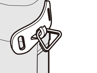 Use the clip attaching tool to open a strap clip, making sure that the tool and clip are in the orientations shown.