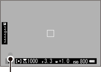 The focus indicator turns green when the subject is in focus and blinks white when the camera is unable to focus. Brackets (“( )”) indicate that the camera is focusing and are displayed continuously in mode C. is displayed in manual focus mode.