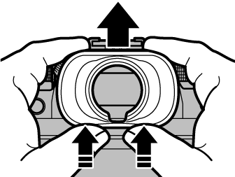 To remove the eye cup, press the bottom in with both thumbs and slide eye cup up.