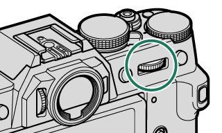 Press the center of the front command dial during shooting to choose a function assigned in DBUTTON/DIAL SETTING > COMMAND DIAL SETTING.
