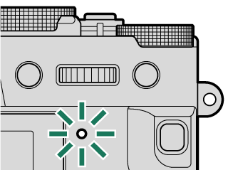 The indicator lamp blinks green whenever the displays are off during interval-timer photography.