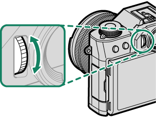 If the indicators displayed in the viewfinder are blurred, put your eye to the viewfinder and rotate the diopter adjustment control until the display is in sharp focus.