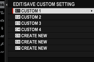 Highlight a destination bank for the new settings (CREATE NEW C1 through C7) and press MENU/OK.