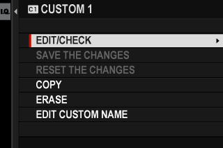 Select HIMAGE QUALITY SETTING > xEDIT/SAVE CUSTOM SETTING in the shooting menu and press MENU/OK.