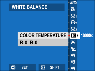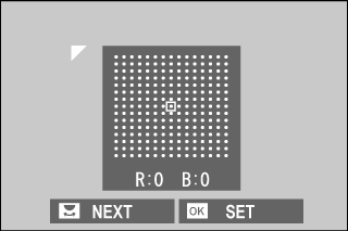 - Press the focus stick left or right to adjust colors on the cyan–red axis.