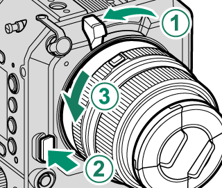 2. レンズロックレバーを図のように倒してロックを解除します。