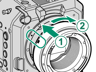 レンズを斜めに押し付けたり、レンズをPLマウントアダプターに取り付けたりしたまま、レンズを回さないでください。信号接点が破損するおそれがあります。