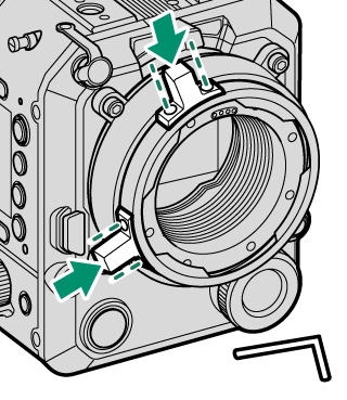 PLマウントアダプターカバーの支持枠を取り外したあと、再度PLマウントアダプターカバーに取り付けるときは、支持枠の指標とPLマウントアダプターカバーのくぼみを合わせて、付属の六角レンチ(2 mm)で締めてください。トルクレンチを使用する場合は、トルクを0.36N・mに設定してください。