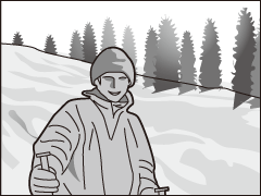 スポットライトを浴びた被写体、特に背景が暗い場合: -²⁄₃ EV