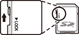 メモリーカードをカメラで記録、消去するときは、書き込み禁止スイッチのロックを解除してください。書き込み禁止スイッチをLOCK側へスライドさせると、画像の記録や消去、カードのフォーマットができなくなります。