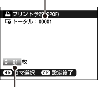 再生メニュー > プリント予約(DPOF)を選びます。