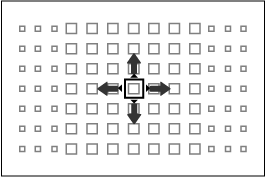 小さな四角(□)ひとつがフォーカスエリアポイントで、枠で囲んだエリアがフォーカスエリアです。