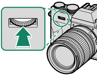 撮影時にフロントコマンドダイヤルの中央を押すごとに、D操作ボタン・ダイヤル設定 > コマンドダイヤル設定で設定した機能を切り替えることができます。