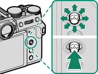 フォーカスレバーを8方向に動かしたり、中央を押したりしてフォーカスエリアを設定できます。メニューを表示しているときは、メニュー項目の選択に使用できます。