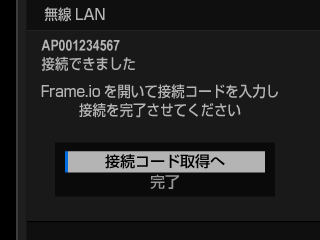 パーソナルコンピューターなどからFrame.ioへログインし、カメラに表示された接続コードを入力します。