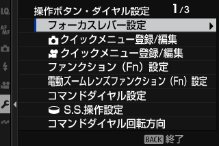 フォーカスレバーを中央に押したり、上下左右に動かしたりしたときの動作を設定できます。