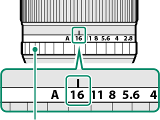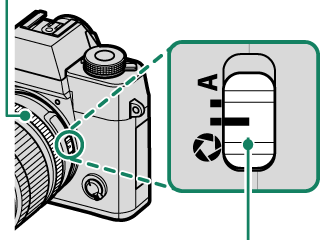 レンズで絞りをA以外に設定しているときは、レンズの絞りリングで絞りを調整できます(A(絞り優先)またはM(マニュアル)モードのとき)。