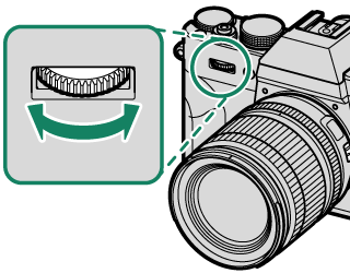 ズーム/フォーカスコントロールリングを回している間、電動ズームします。回す量によってズームの速度が変わります。 |
