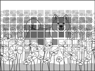ピントがずれているときは像のボケが強調されて格子模様になり、ピントが合うと格子模様が消えて像が明確になります。