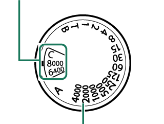 旋转快门速度拨盘/感光度拨盘可调整快门速度。提起并旋转拨盘可调整感光度。