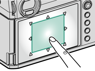 通过轻触显示屏可重新定位对焦区域,以便选择不同的拍摄对象。若将 自动对焦模式 选为 z广角,则还可使用对焦棒(对焦杆)。