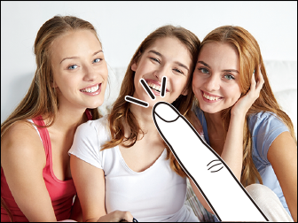 滑拢:将两个手指放在屏幕上,然后将它们滑动并拢可缩小照片。照片以全画面显示时,缩小操作将启动多幅画面回放。