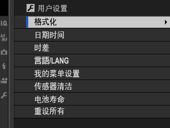 若要访问基本相机设定,请按下 MENU/OK,选择 (设置)选项卡,并选择 用户设置。