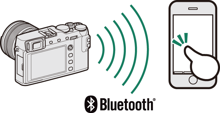 请在您的智能手机或平板设备上安装最新版本的 FUJIFILM Camera Remote 应用程序,以通过 Bluetooth® 或 Wi-Fi 连接至相机。